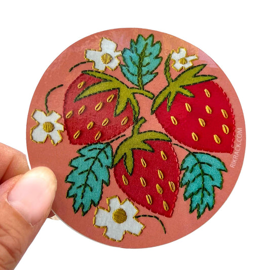 Strawberries Embroidery 3" Vinyl Sticker