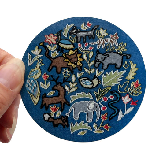 Wildlife Embroidery 3" Vinyl Circle Sticker