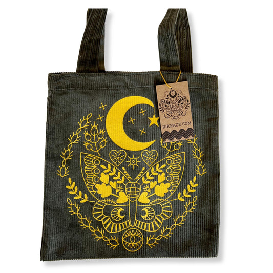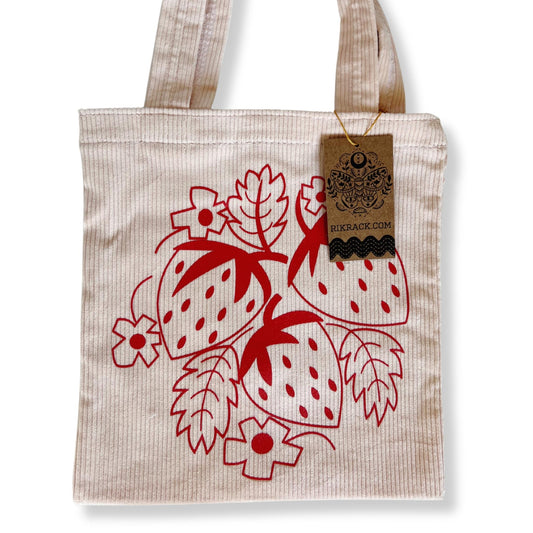 Our corduroy tote bags are super soft and feature Rikrack embroidery designs silkscreened on the front. All of our bags are perfect for carrying your favorite books and crafts when you're out and about!